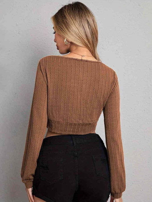 Sold outSquare Neck Tie Front Knit Top